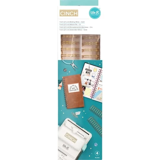 Make custom books, planners, and journals up to 12″ tall with the binding wires and We R Cinch. The box measures 3.5″ x 13.5″ x 2.5″ with hang tab and includes four binding wires measuring 1.75″ x 11.375″. Binding wires close to 1″ when used with a cinch machine. Recommended for ages 18 and up. Imported.