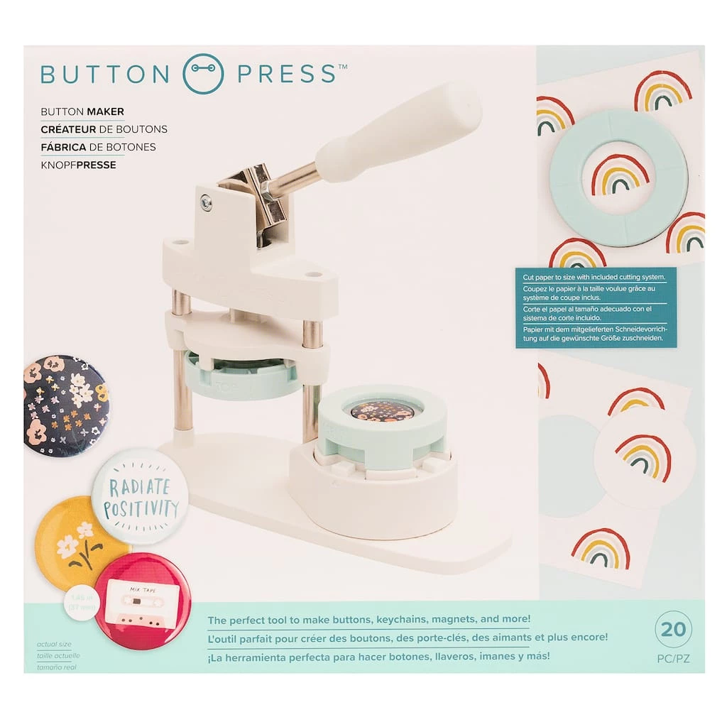DIY your own buttons, magnets, keychains, and so much more with the Button Press by We R Memory Keepers. Cut paper to size with included cutting system for both small and large button projects! The Button Press features an easy-to-press handle, and can be used to create buttons out of paper, cardstock, and fabric.