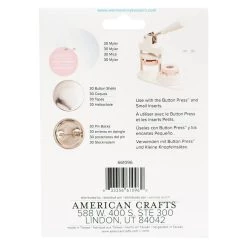 These button pieces make 30 buttons and work perfectly with the We R Memory Keepers Button Press, sold separately. Create custom small sized buttons for backpacks, bags, and more.