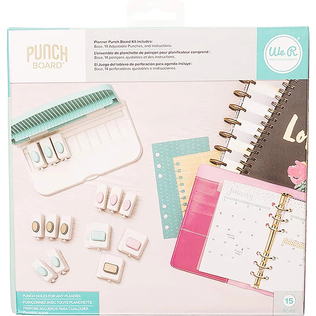 Punch perfect sized holes for any of your planners. Customize to your liking, add as many pages as you want. Punches include standard, disc, and spiral and are interchangeable for easy customization and lock together for storage.