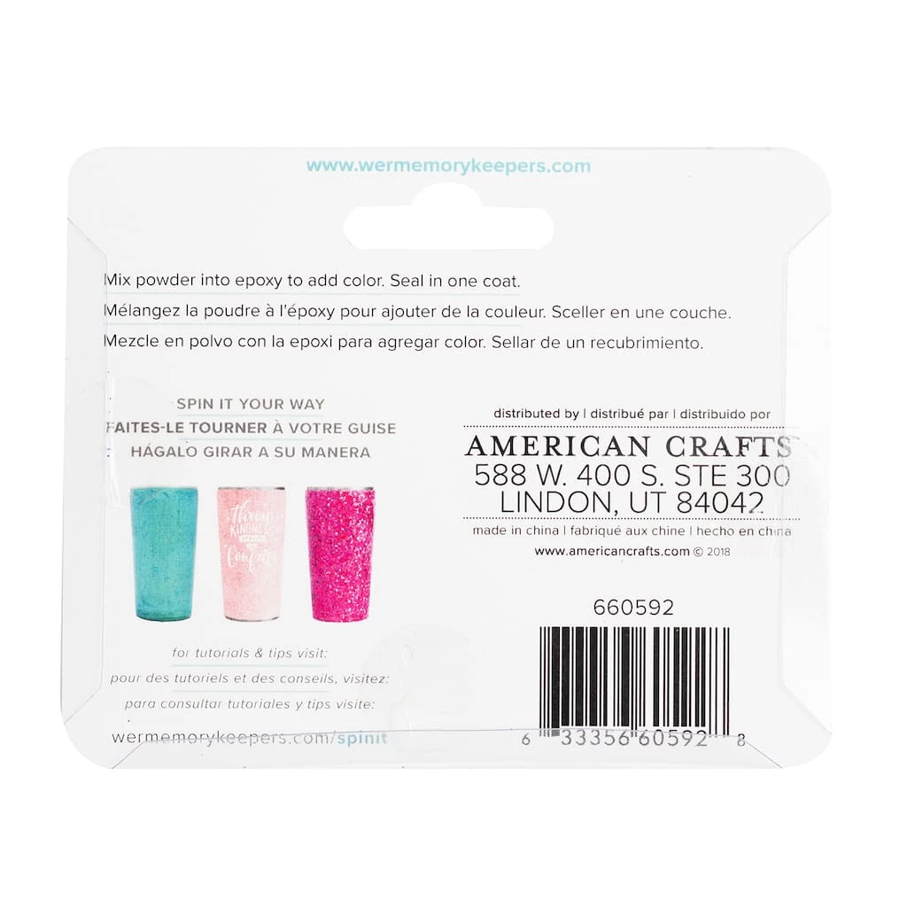 You can add a royal pearlized finish to your clear resin with this mica powder from We R Memory Keepers. Glitter and crystal beads are perfect for enhancing the charm of your colored epoxy crafts.