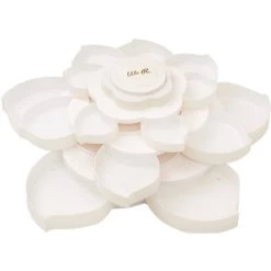 This is a totally unique way to store embellishments in one place and in one container! With a simple twist of the top layer, all 16 compartments bloom open at the same time.